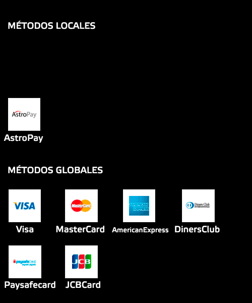 Además de poder asociar las tarjetas de crédito y débito más reconocidas (MasterCard, VISA, AmericanExpress y Diners Club), dispones de varios métodos de pago nacionales. Simplemente tienes que acercarte al local de tu preferencia y seguir los pasos para acreditar el monto en tu cuenta de Neteller o Skrill.